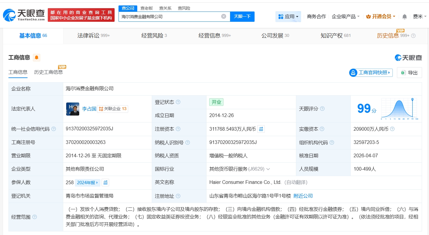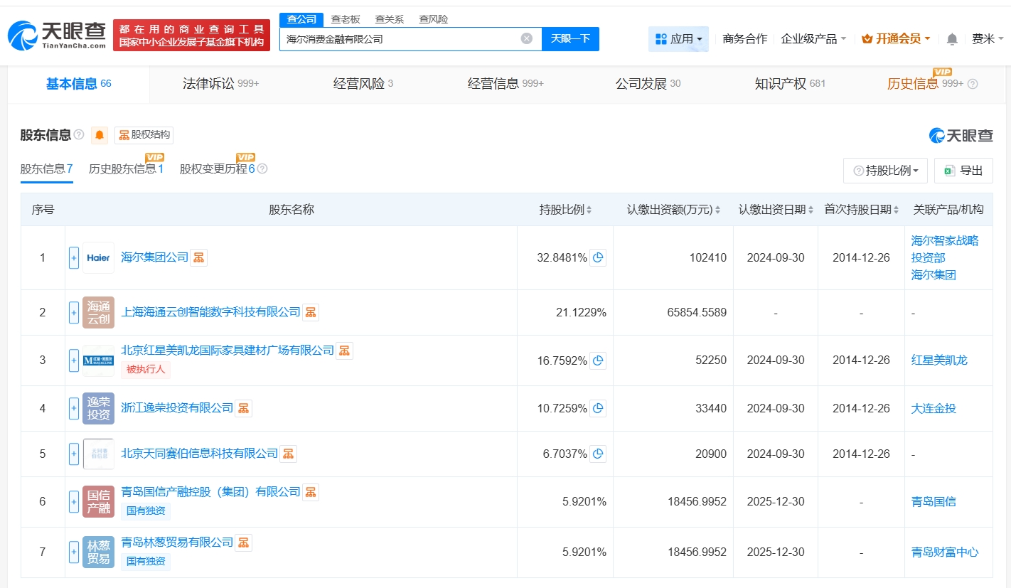 海尔消费金融公司增资至31.2亿